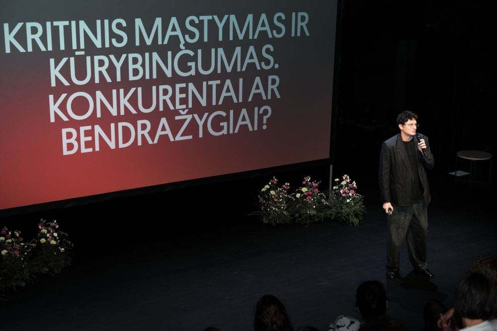 VU profesorius ir „Kūrybingumo mokyklos“ įkūrėjas K. Sabolius pristatė pranešimą „Kritinis mąstymas ir kūrybingumas. Konkurentai ar bendražygiai?“, kuriame analizavo, kaip šios dvi kompetencijos sąveikauja tarpusavyje.