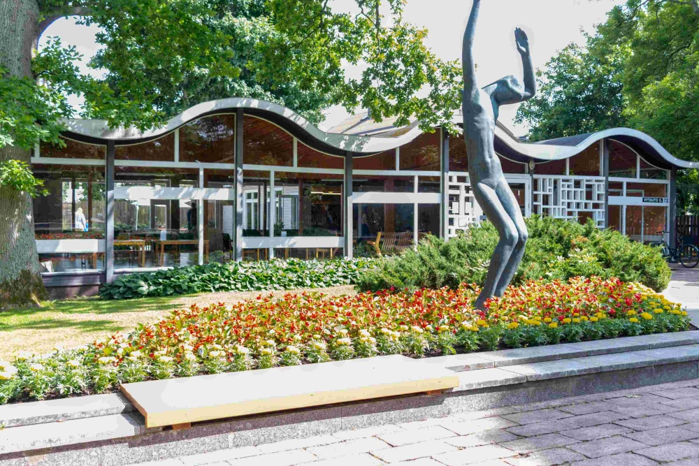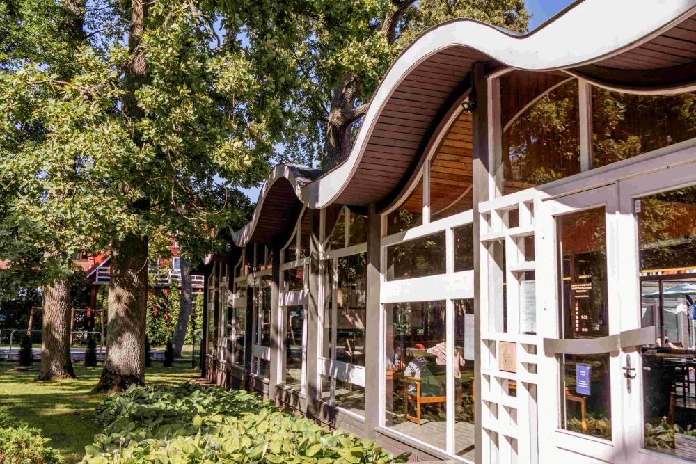 Banguotas stogas simbolizuoja Baltijos jūros bangas ir yra vienas atpažįstamiausių kurorto architektūros motyvų. Pastatas laikomas vienu pirmųjų organiškojo modernizmo pavyzdžių Lietuvoje, jungiančių medį, stiklą ir natūralią aplinką.