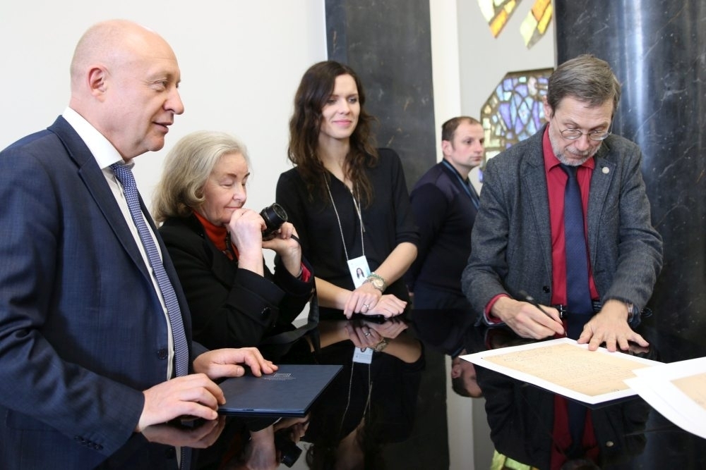 Linas Linkevičius, Minister of Foreign Affairs of the Republic of Lithuania, thanked all parties involved in the discovery of the document: “I would like to thank them all. First of all, Germany – for cooperation and understanding. Our colleagues in Germany are perfectly aware of what this means to our country. I would like to emphasize that this document is the property of Germany and it is not obliged to return it to us. We were promised that we would be allowed to bring the document to Lithuania and put in on public display. We are in negotiation and the atmosphere is friendly. I am grateful to the National Library: we chose this venue because it is an open cultural centre which provides access to everyone. I am grateful to Prof. Mažylis for making this a reality to talk about.”