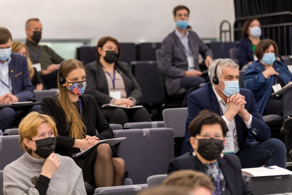 In her speech, Antonia Arahova, President-elect of the International Federation of Library Associations and Institutions (IFLA) (2021–2023) and President of the General Council for Libraries (Greece), wished great success to ‘this important congress’ in Lithuanian as well as emphasised great international expertise of the National Library’s Director-General Prof. Dr. Renaldas Gudauskas and the potential of the Library’s staff. IFLA’s President also spoke about political leadership, parliamentary democracy, and the role of libraries: ‘Of exceptional importance for political leadership is analysis of actions and the capability to assess consequences of decisions and foresee at least a few steps ahead. We think that it is worth the effort, especially in the constantly changing realities today’s pandemic. Our libraries are capable of meeting this encounter and, therefore, we could hope that the future will be lighter and more interesting than we have imagined’.