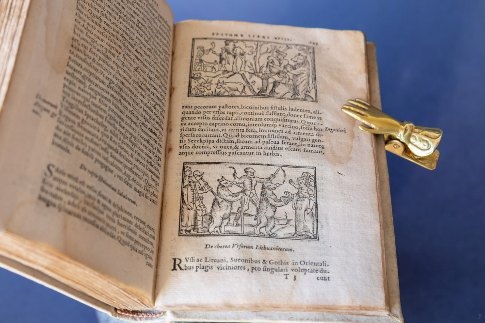 Įsigyta XVI a. knyga – tai Švedijos istoriko, kartografo ir katalikų arkivyskupo Olauso Magnuso (1490–1557/1558) istorinis veikalas „Historia de gentibus septentrionalibus“ („Šiaurės tautų istorija“), leistas vienoje garsiausių Europoje spaustuvių – Plantino-Moretų spaustuvėje (Officina Plantiniana) Antverpene 1558 m. Magnuso veikalas svarbus dėl savo turinio. Jame, aprašant Skandinavijos, Islandijos, Grenlandijos istoriją, folklorą ir papročius, apibūdinti ir lietuvių papročiai, kultūra, buitis. Šis populiarus veikalas pirmiausia buvo išleistas 1555 m. Romoje, o Plantino-Moretų spaustuvėje išspausdinta sutrumpinta veikalo versija, taip pat prisidėjusi prie veikalo išpopuliarėjimo. Ši knyga iliustruota 135 medžio raižiniais, vaizduojančiais Šiaurės šalių gyvenimą. Įdomu, kad šokančių meškų iliustracija siejama su Lietuvos Didžiąja Kunigaikštyste ir jos tradicijomis.