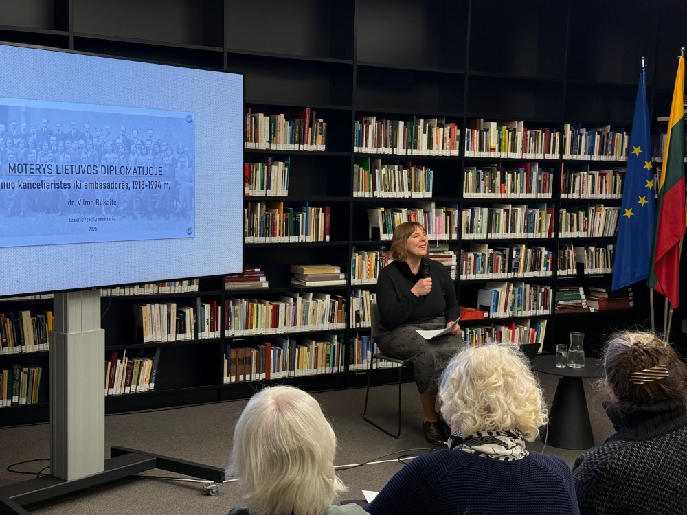 Nuo 1918 m. Užsienio reikalų ministerijos ir Lietuvos atstovybių duris visame pasaulyje varstė žymūs Lietuvos diplomatai Jurgis Šaulys, Petras Klimas, Stasys Lozoraitis vyresnysis, jo sūnūs broliai Lozoraičiai ir kiti. Tačiau nuo pat diplomatinės tarnybos sukūrimo pradžios Lietuvai tarnavo ir daugybė garsių bei ligi šiol nepakankamai išgarsintų Lietuvos moterų. Iš pradžių jos apsiimdavo antrinių arba tretinių vaidmenų, bet ilgainiui prasiskindavo kelią ir iki pačių aukščiausių diplomatinių pozicijų. Kuo jos vardu, kokios buvo jų darbo sąlygos ir kaip viskas pasikeitė nuo tarpukario, lapkričio 11 d. Lietuvos nacionalinėje Martyno Mažvydo bibliotekoje pasakojo istorikė dr. Vilma Bukaitė.