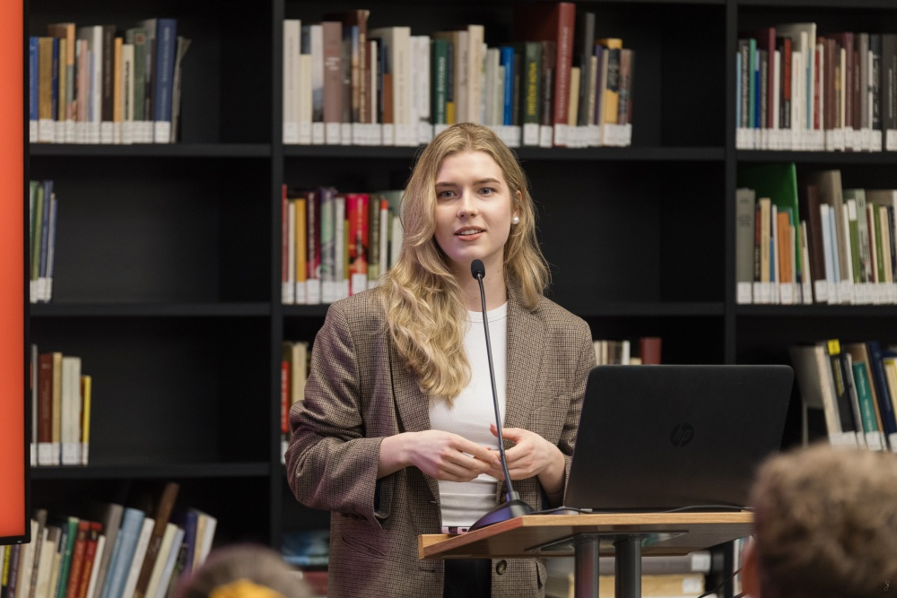 Tarptautinius santykius Oksforde studijuojanti Greta Latvėnaitė pasakojo, kad karas prasideda ne nuo raketų, o nuo įtakingų politikų kalbų. Anot pranešėjos, militarizuotas diskursas yra strategijos dalis, kurį reikia analizuoti dar prieš karą. Jaunoji mokslininkė savo tyrime parodė, kad Rusijos kuriami diskursai prieš karines intervencijas į Siriją 2015 m. ir į Ukrainą 2022 m. buvo struktūriškai panašūs, nepaisant to, kad karinės agresijos panaudojimas prieš šias šalis turėjo skirtingą kontekstą.