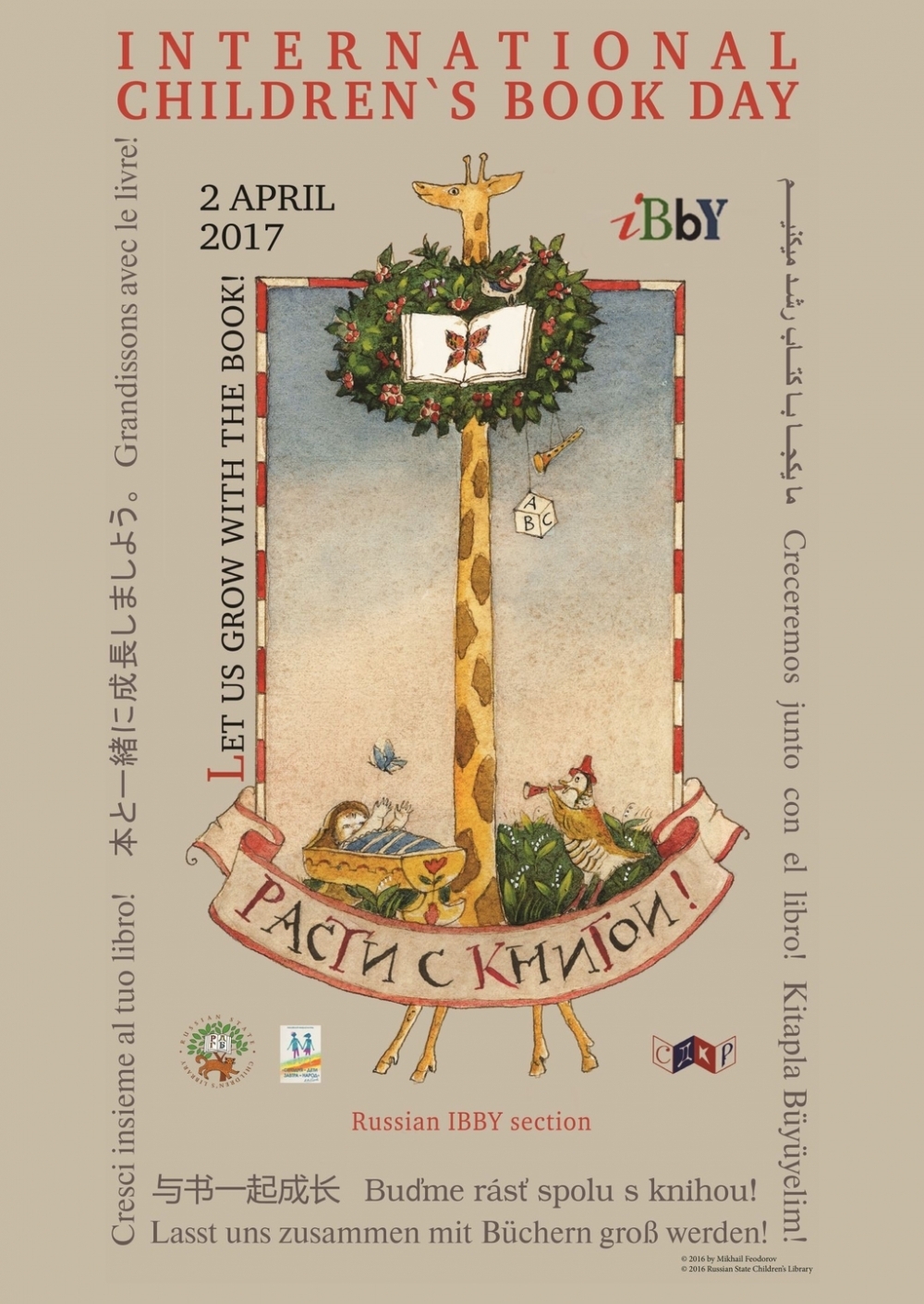 Kiekvienais metais kuri nors Tarptautinės vaikų ir jaunimo literatūros asociacijos (IBBY) šalis narė tampa šventės rėmėja – parengia šiai progai skirtą plakatą ir kreipimąsi į skaitytojus. Šiemet ši garbė atiteko Rusijos skyriui – plakatą sukūrė garsus dailininkas Michailas Fiodorovas, o kreipimąsi į pasaulio skaitytojus vaikus ir suaugusiuosius parašė vaikų spaudos ir radijo žurnalistas, rašytojas Sergejus Machotinas. Kviečiame tekstą, išverstą Irenos Aleksaitės, bei plakatą publikuoti Balandžio 2 d. savo atstovaujamuose leidiniuose.
