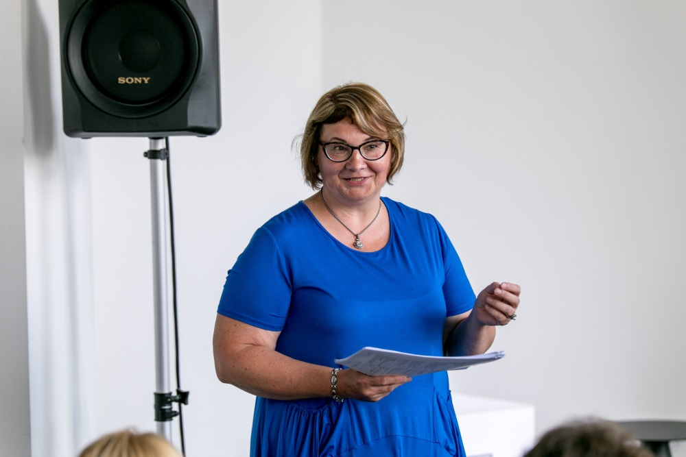 Šiuo metu Nacionalinėje bibliotekoje vykdomą projektą „Migracija mene ir moksle – migracijos tematikos kolekcijos sukūrimas „Europeanoje“ susirinkusiai auditorijai pristatė Nacionalinės bibliotekos Dokumentinio paveldo tyrimų departamento Lituanistikos skyriaus vadovė Giedrė Milerytė-Japertienė.