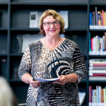 Nacionalinės bibliotekos generalinio direktoriaus pavaduotoja informacijos išteklių ir paslaugų plėtrai Sandra Leknickienė svečiams pristatė biblioteką, jos misiją, inovatyvias erdves.