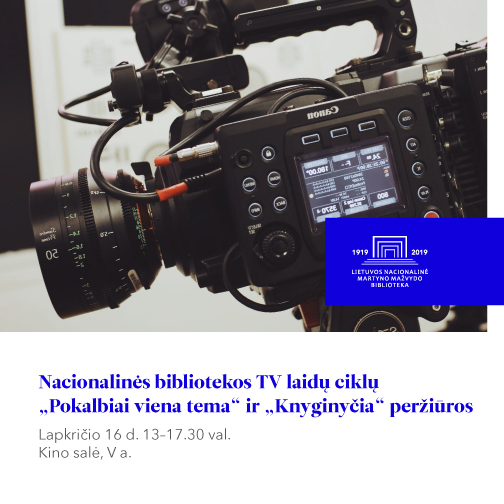 Lapkričio 16 d. 13–17.30 val. – Nacionalinės bibliotekos TV laidų ciklų „Pokalbiai viena tema“ ir „Knyginyčia“ peržiūros