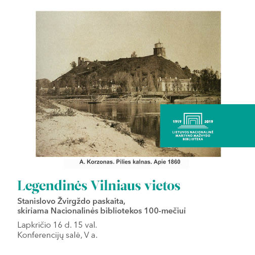 S. Žvirgždo paskaita Konferencijų salėje (V a.) „Legendinės Vilniaus vietos“ skiriama Nacionalinės bibliotekos 100-mečio jubiliejui.
