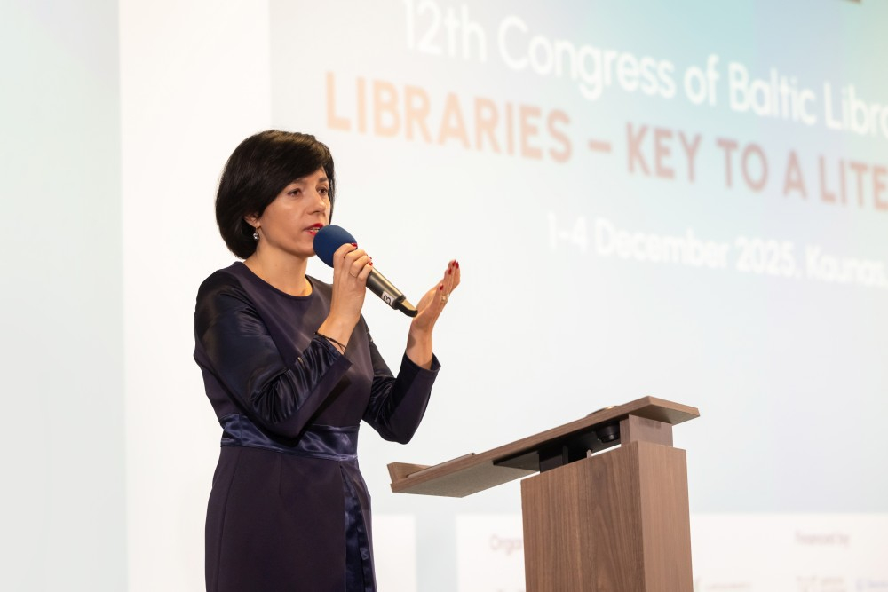 Sveikindama kongreso dalyvius, Lietuvos Respublikos kultūros ministrė Vaida Aleknavičienė akcentavo, kad šiuolaikinės bibliotekos peržengė tradicinių kultūros erdvių ribas ir tapo esminiais informacinio saugumo bei pilietinio atsparumo centrais. „Bibliotekos suteikia galimybes kiekvienam žmogui mokytis, tobulėti ir kritiškai vertinti mus supančią informaciją. Tai ypač aktualu šiandien, kai demokratinės vertybės susiduria su naujais iššūkiais – nuo dezinformacijos plitimo iki visuomenės fragmentacijos“, – kalbėjo ministrė. Ji taip pat išskyrė Lietuvos bibliotekų vaidmenį stiprinant gyventojų medijų ir informacinį raštingumą, paminėdama nuo 2022 m. vykdomą MIRKT programą, dėl kurios suburtas platus edukatorių tinklas, sukurta medijų ir informacinio raštingumo ugdymo metodika ir sėkmingai vedami mokymai. „Investicijos į bibliotekas – tai išties ilgalaikė investicija į mūsų šalies intelektinį kapitalą“, – apibendrino V. Aleknavičienė.